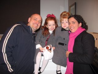 The girls were so excited about the Rockettes' Christmas show. Maddie was dressed from shoe to bow at least 3 hours early. Here they are with Lauren and Kyle before the show while we rehearse.