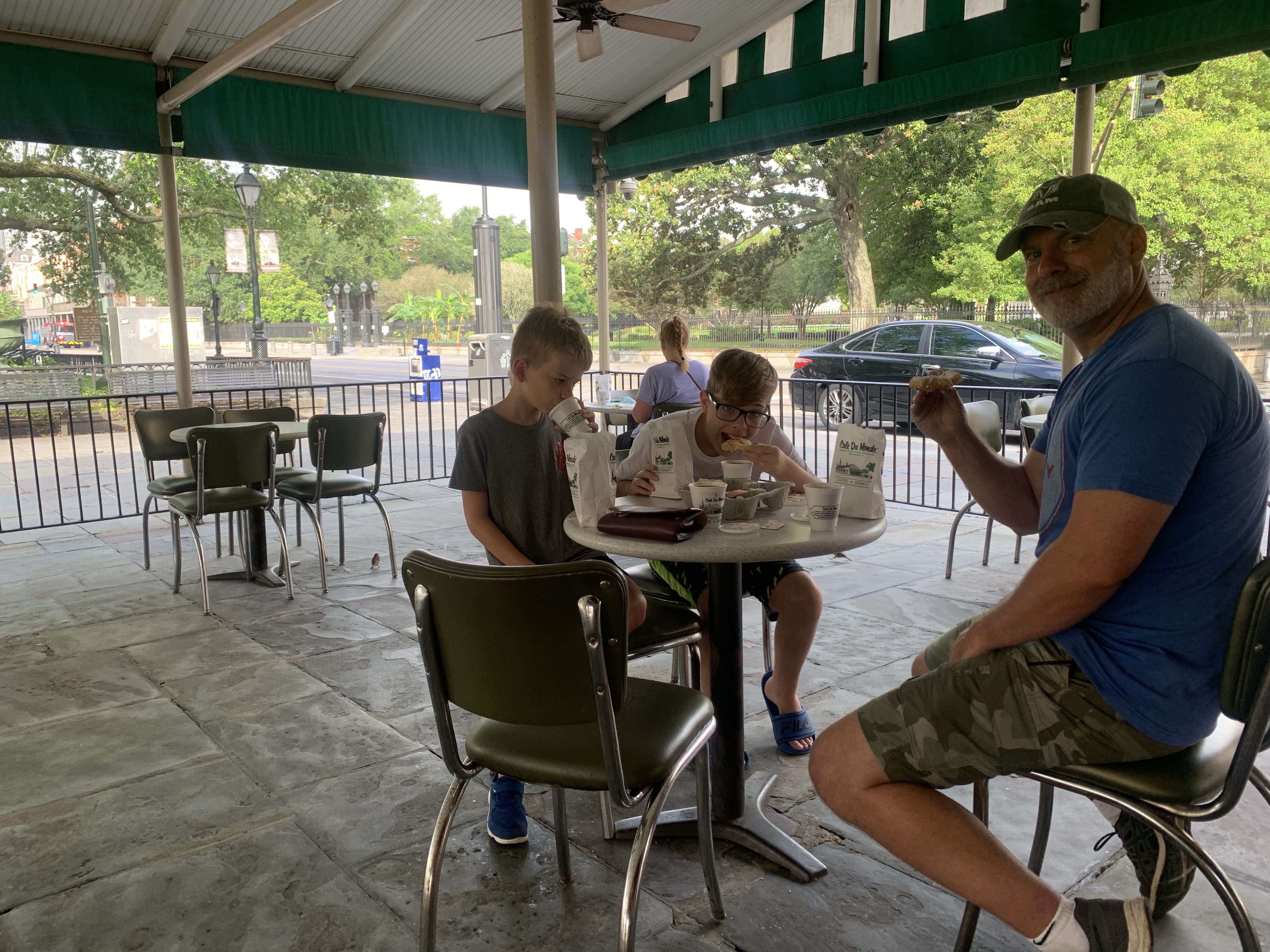 While we love to unplug during travel, it is helpful to check on the family after a few days and confirm your bookings for various excursions. We found a cafe with free Internet, a terrace, and a great lunch offering. It was the perfect reprieve from the heat, and we were glad for the opportunity to have a mojito and message the family back home. There were several of these cafes but they aren’t necessarily widely advertised, so just ask around and read the signage. Another key thing to look for is shade! Just on the other side of the street, people looked miserable on the balcony with the sun glaring down on them, but we were quite comfortable in the shade.