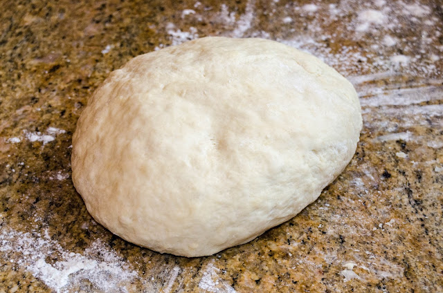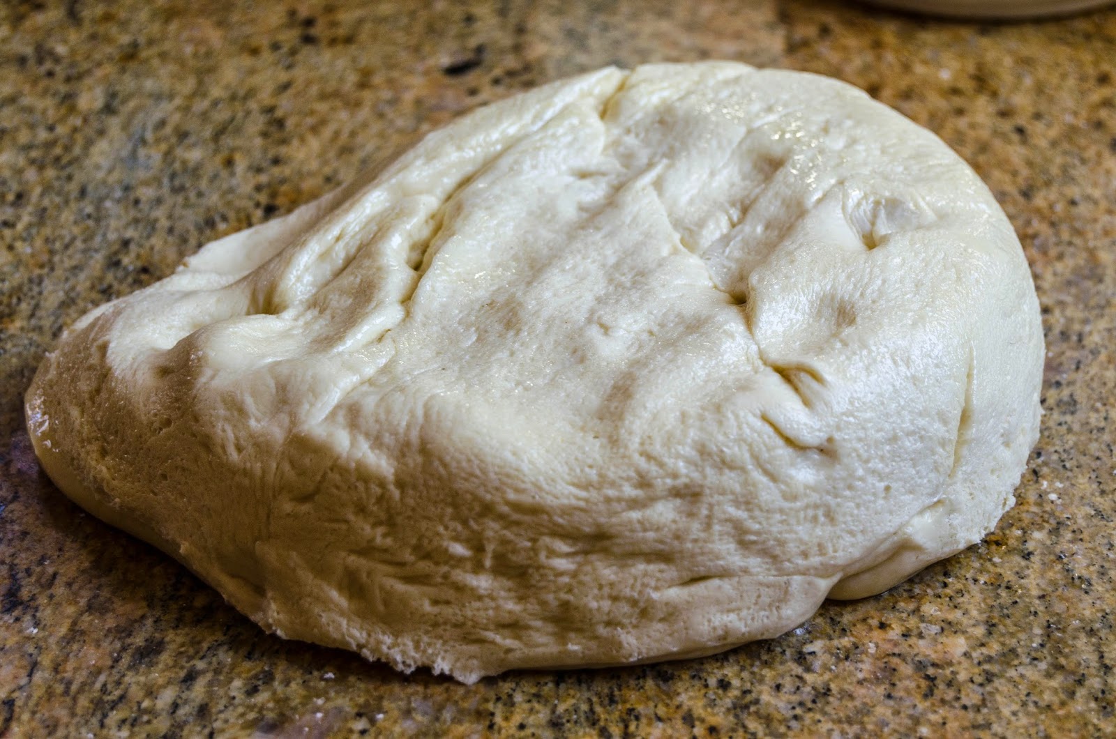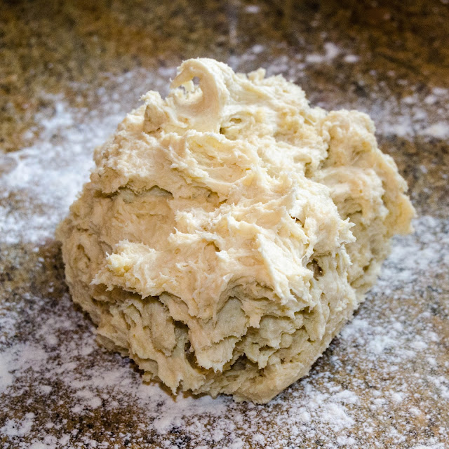 The dough was very soft and sticky, so I worked in more flour than I usually would.  It didn't take too much flour to become manageable, although it was still soft.