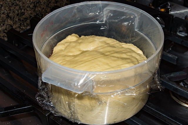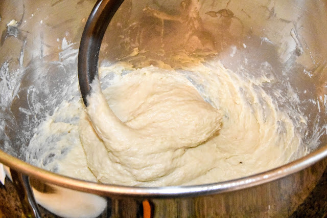 All the ingredients after they rest for a few minutes.  As promised, it's a very soft dough, although, thankfully, it seems to have more structure than mashed potatoes.
