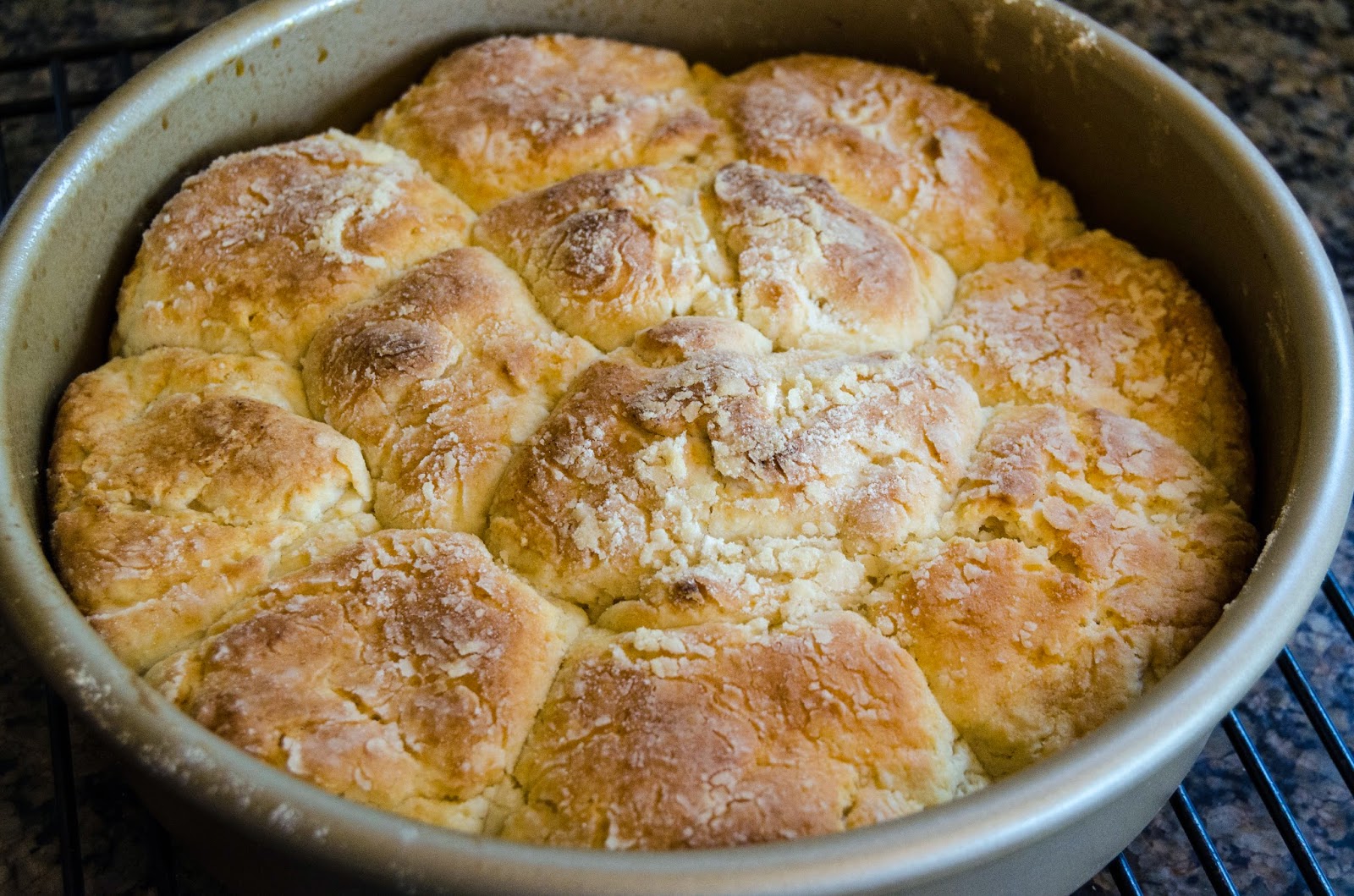 I wish I remembered baking these biscuits in my first Bread Bible go-round, but when I read the directions, it brought back exactly nothing.  Moreover, the directions didn't make sense to me:  was all the one cup of flour (not self-rising) supposed to go on the biscuits?  Was I supposed to dust off the extra flour or add even more?  My first blog post was of no help whatsoever--there was only one picture (which turned out to look better than my second effort) and no description of the taste or texture, which is what I was interested in.