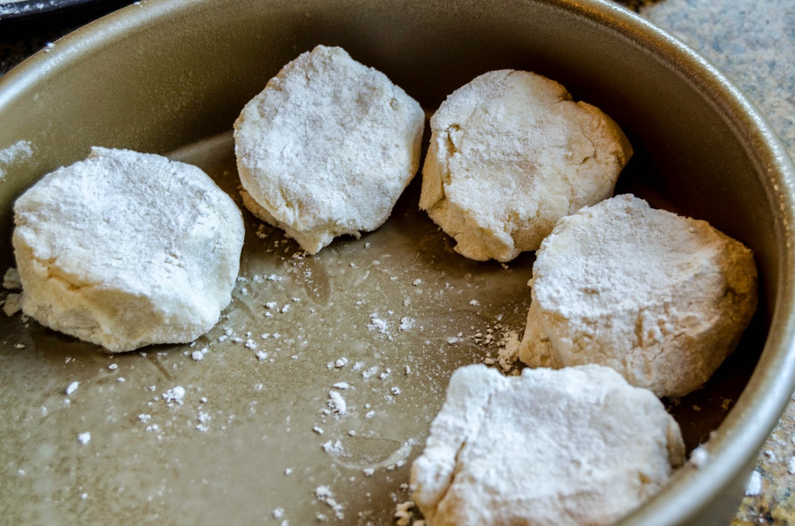 At this point, I do remember making the biscuits ten years ago.  I remember because when I read the instructions and saw shaping your fingers like a C, I had no idea what she was talking about, but it became clear when I actually did it.  This is the same reaction I had ten years ago.  This time I didn't make the biscuits large enough because I had more than 9.  They looked better when I was a rank amateur.