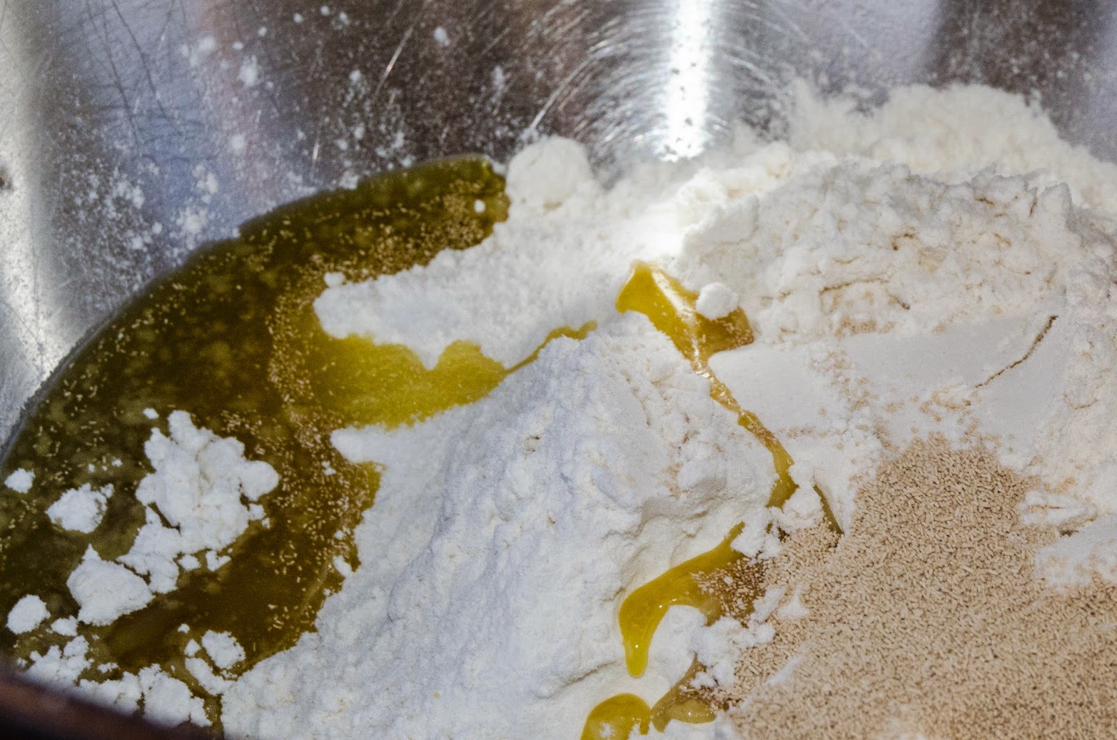 This is about as basic as bread dough gets:  flour, water, salt, and yeast (with a bit of olive oil thrown in).