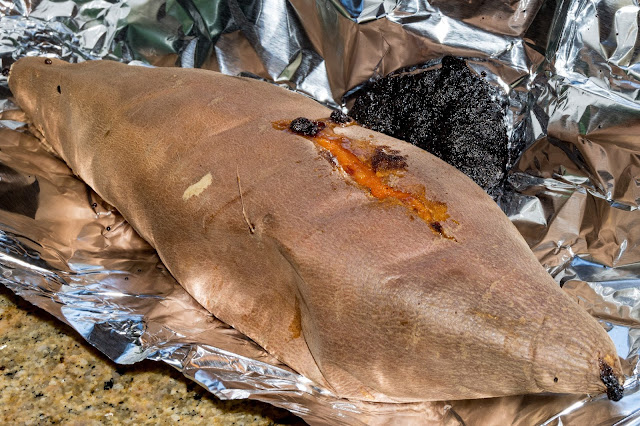 I think this was labelled as a yam, not a sweet potato, but, according to multiple internet sources, it's a sweet potato.  Real yams aren't sold in most American grocery stores, even though a sweet potato labelled as a yam is sold.  I started to read about the Great Yam Conspiracy, but then decided it wasn't that interesting.  But I got a huge one, so I could feed the rest of it to granddaughter Lily, who is just starting to enjoy mashed and pureed foods.  Anyway, I used buttermilk in place of some of the water, and I think buttermilk just added to the flavor.