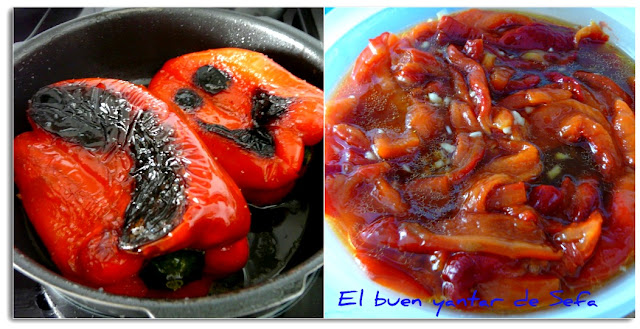 Hoy quiero dejaros otra manera de asar pimientos rojos y que ademas de quedar muy ricos, se hacen en un momento, con lo que eso conlleva, ahorro de tiempo y electricidad.