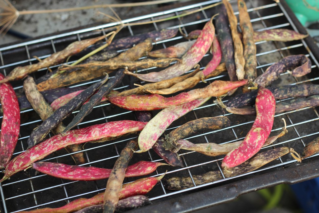 Outside the plot our mini-meadow is aging appropriately into the dying year – husks of plantain, clover and willowherb strung with the webs of a dozen fat orb-weavers. This is the yield of the clay! Along with the bagfulls of apples, the unending kale and the bean pods drying in the polytunnel. A few things to hold on to, for this season at least.