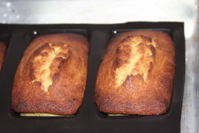 He horneado el cake en molde Flexipan de financiers, con lo que he obtenido unos pastelitos no demasiado altos, y que han necesitado menos tiempo de horneado que si lo hubiera puesto en un molde de cake.