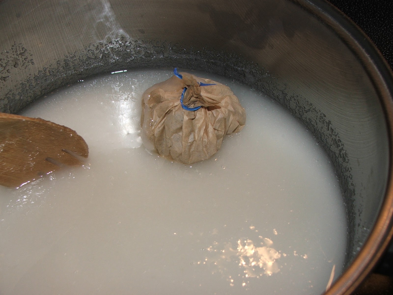 First, I made a spice bag (using a coffee filter, you can also use the traditional cheesecloth) with...