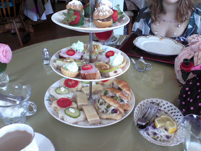 As we sipped our teas... we were treated to a first course of blueberry scones served with raspberry jam or Devonshire cream.