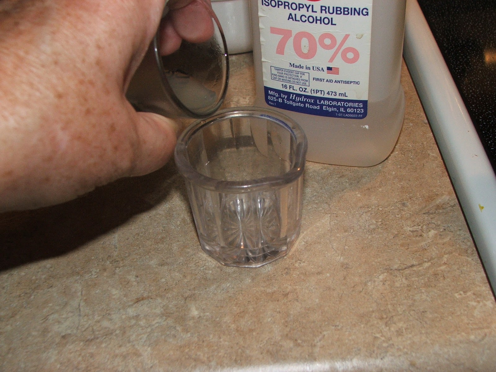 I added a few drops of the liquid (cooled) to a small amount of rubbing alcohol to test the strength.
