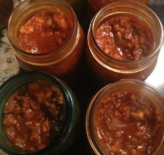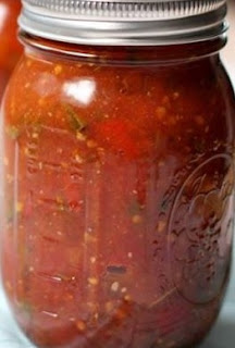 Bring the mixture to a boil, reduce heat and simmer for 30 minutes. You can simmer it longer if you want a thicker more concentrated rotel. Ladel hot rotel into hot sterilized jars. (I used a slotted spoon to fill the jars, I didn't let all the juice drain, just most of it.) Leaving 1/4" headspace. Clean off rims of jars and secure the lids and rings. Place them in a hot water bath canner for 10 minutes.