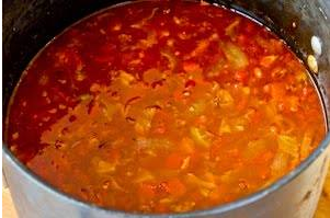 Instructions: Add onions, garlic, paprika, caraway seed (if using), cooked ground beef, roasted tomatoes, cabbage, beef stock, roasted red peppers, and 2 cups water to soup pot and start to simmer. Simmer for 30 mins. Using slotted spoon, divide solid ingredients between the 2 quart jars. Add soup liquid to 1 inch headspace. Wipe rims, assemble lids and process in a pressure canner for 90 mins for quarts (75 mins for pints) at 10 lbs of pressure.