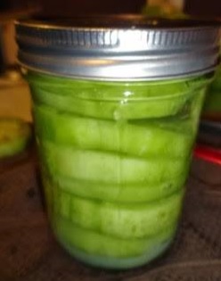 5. Place in hot water bath, making sure jars are covered with at least 1 inch of water. Process for 40 minutes, turn off heat, remove canner lid, let sit 5 minutes in the canner and remove jars to cool completely.