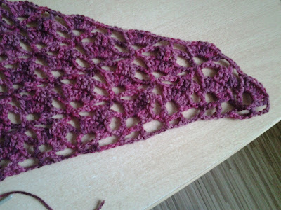 Mais uma vez as cores não correspondem á realidade. São muito mais bonitas do que se apresentam na foto. Mais um trabalho para acrescentar á Lista de Afazeres. O xaile que talvez vire lenço, já o mostrei aqui , já está bem grandinho.