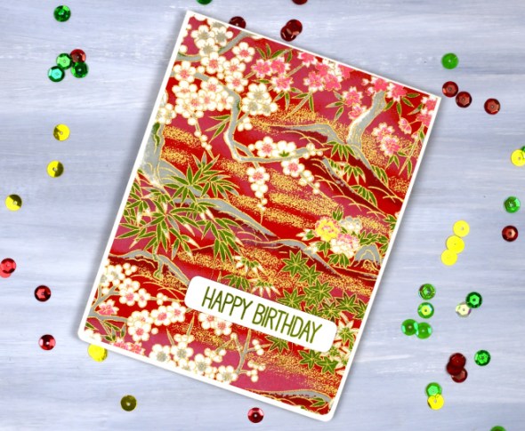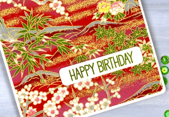 All the papers on today’s cards are rice papers featuring bold colours and gold details. They were a lovely gift from a lovely person. Because the papers are so beautiful I really didn’t do much to turn them into cards. (the red one, the bluey-green one, the blue floral one)