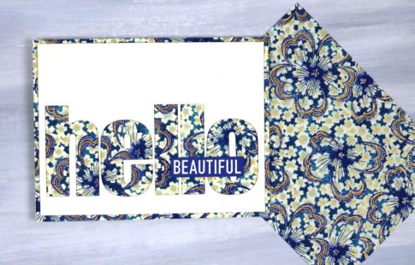 All the cards featured today use a panel that fills or almost fills a card front. I simply added sentiments and rounded corners to the red card and the bluey-green cards. For the hello card above I used the cricut to cut the word hello from a cream panel so the pretty paper would be revealed. I added the word ‘Beautiful’ from a Darkroom Door set, ‘You are Everything‘.