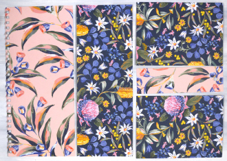 In this post I will feature the blue background panel covered in Australian native flowers such as waratah, bottlebrush and flannel flower. I created two portrait orientation cards shown below. The accents on all the cards are cut from gold cardstock to co-ordinate with the bottlebrush (callistemon) and wattle in the design. The greeting below left was cut on the cricut, below right features a Penny Black border die and a retired C&9 sentiment.