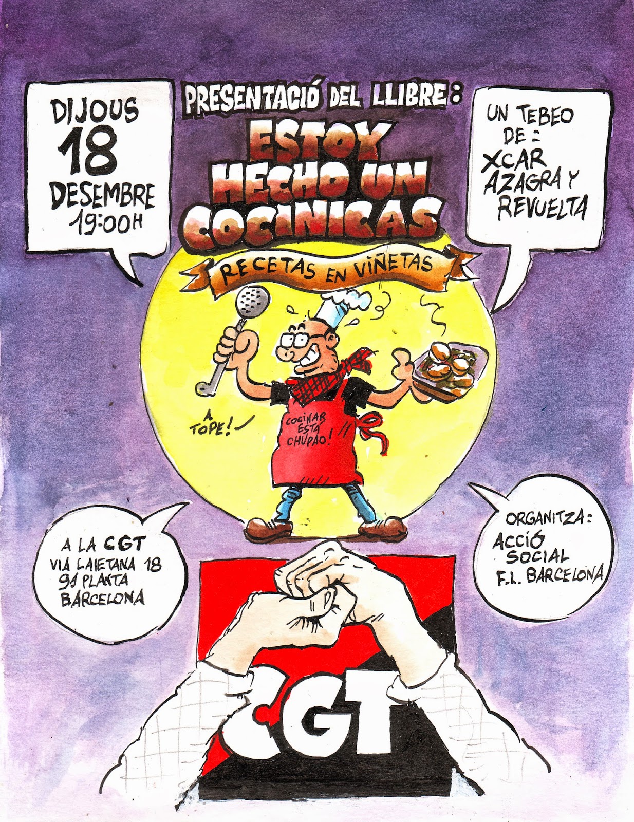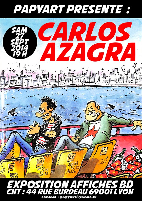 Fondateur du PGB (le Parti des Gens du Bar), Carlos Azagra de Barcelona participe depuis la fin des 70’s à de nombreux comics et a réalisé une multitude d’affiches politiques et syndicales offertes généreusement aux différentes composantes du mouvement Ibérique !