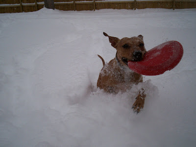 This is a picture of last winter. Nina going nuts for the Frisbee in fresh powder.