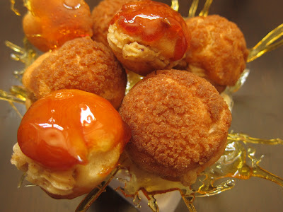 Alcuni choux sono invece stati ricoperti con caramello biondo che si sposa benissimo con la crema al praliné.
