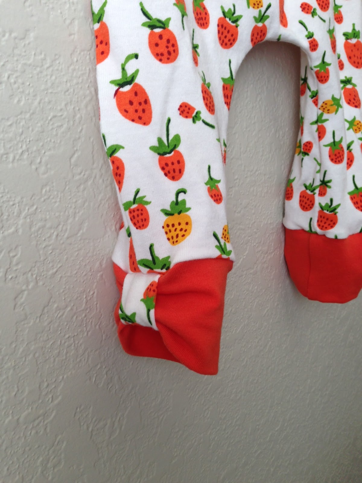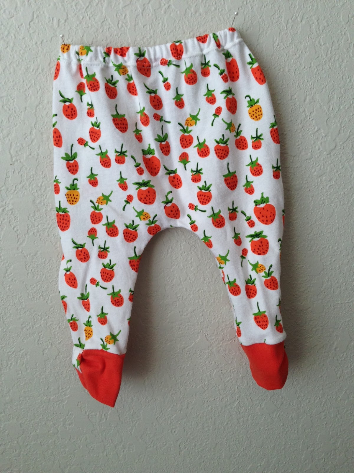 I started working on some baby clothes. Girl baby clothes. This adorable pattern is from Peek-A-Boo. I worked it up with some orange Briar Rose strawberries and a soft orange knit. It didn't take too terribly long, but since it takes about a yard of knit it definatly isn't cheaper to make your own.