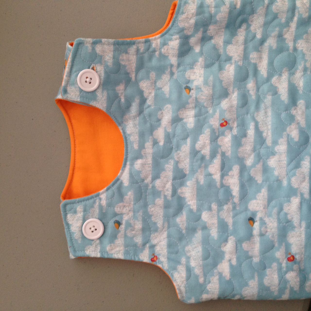 Another little project I've been working on is the Lua Sleep Sack. I decided to try quilting and love the effect. It's like a quilt dress for a baby. I can't wait to try it out on Little Peanut in our Wyoming winter. Here is a close up of the buttons. I have enough fabric for three more. I may give two to some friends who are having boys in the coming months. Boys are so hard to sew for.