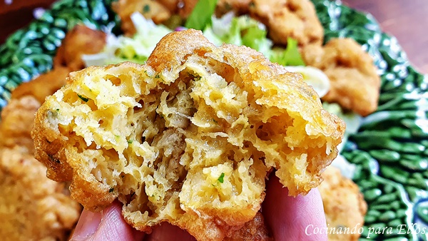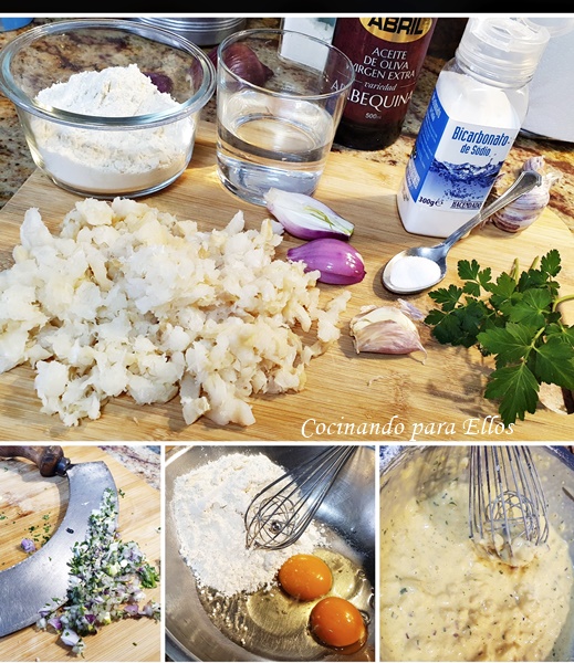Limpiamos los lomos de bacalao, yo le retiro las espinas y las aletas cociéndolas en una poca agua, sirviéndome de caldo.