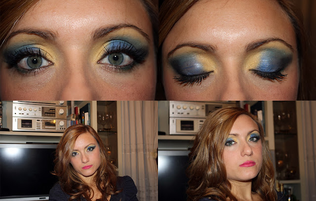 giallo,blu,verde, grigio scuro e poi ho tracciato una riga di eyeliner.