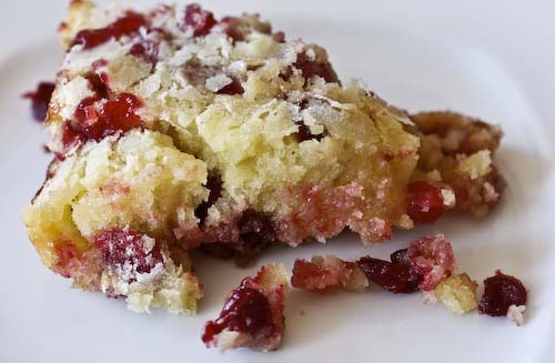 * This is a rustic dessert, so don't expect perfect slices. Just embrace the mound of cranberries and cake that falls onto your plate.