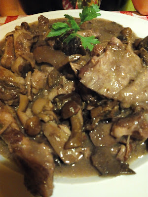 Es tracta del clàssic, conegut i deliciós pollastre amb escamarlans, però pujant-lo de categoria amb la utilització d'un aviram molt més gran, de carn més ferma i gustosa, amb un greix i unes propietats nutricionals que el fan més saludable. En fi, i en qualsevol cas, un plat dels que fan festa.