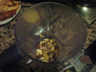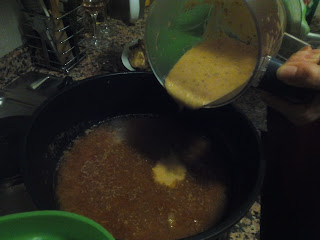 Ara es tracta de coure la carn. Jo la vaig tenir coent a foc suau, amb un xup-xup ben lent, durant 1 hora i 10 minuts. Mentrestant, aprofitem per per la picada, que ens ajudarà a arrodonir la salsa final: hi posem tots els ingredints dins d'un got i triturem amb el braç, ajudant-nos amb una mica del mateix brou que tenim a la cassola.