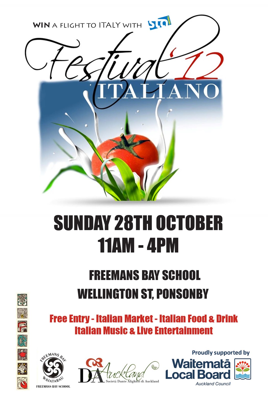 In occasion of the Festival Italiano in Auckland, to be held at Freemans Bay School on 28 October 2012, we will have a very special raffle to raise money for the Dante Alighieri Italian School for children. Tickets will be on sale at the Festival, and you can also buy them at the Dante rooms from Monday 15 October, 1 for $5 or 5 tickets for $20. Only 3000 tickets printed, be quick!