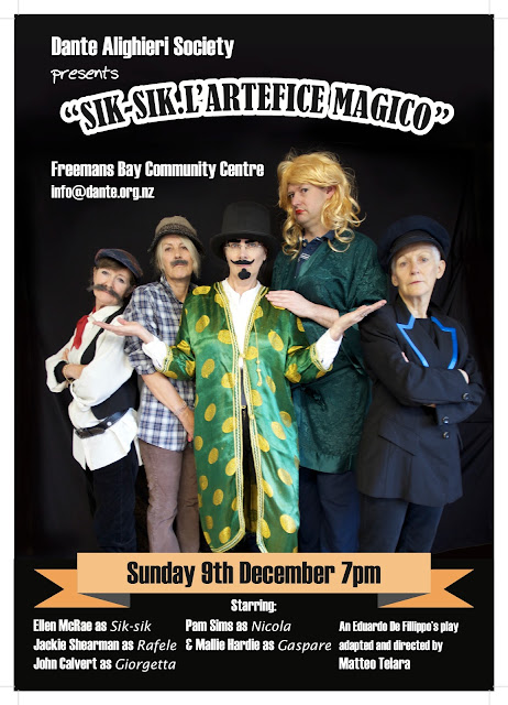 Domenica 9 Dicembre. 5.30pm-6pm I bambini metteranno in scena Pinocchio 6pm-7pm Panettone e spumante offerto dalla Dante (i presenti sono invitati a portare a loro volta un piatto) 7pm-8pm Sik-Sik. L'artefice magico