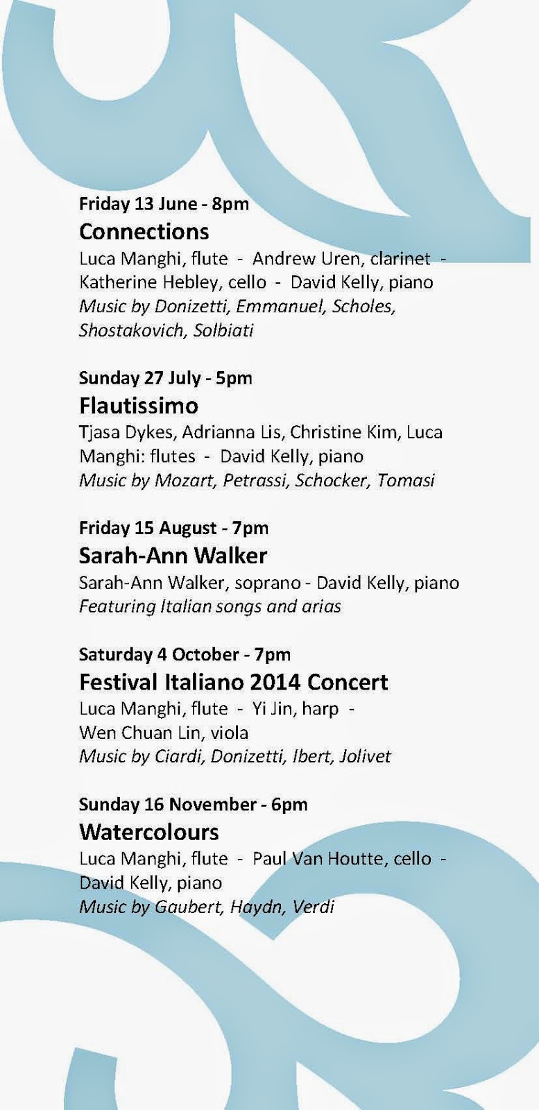 On the 13th of June 2014 we will open the Dante Alighieri Chamber Music Series with the first concert