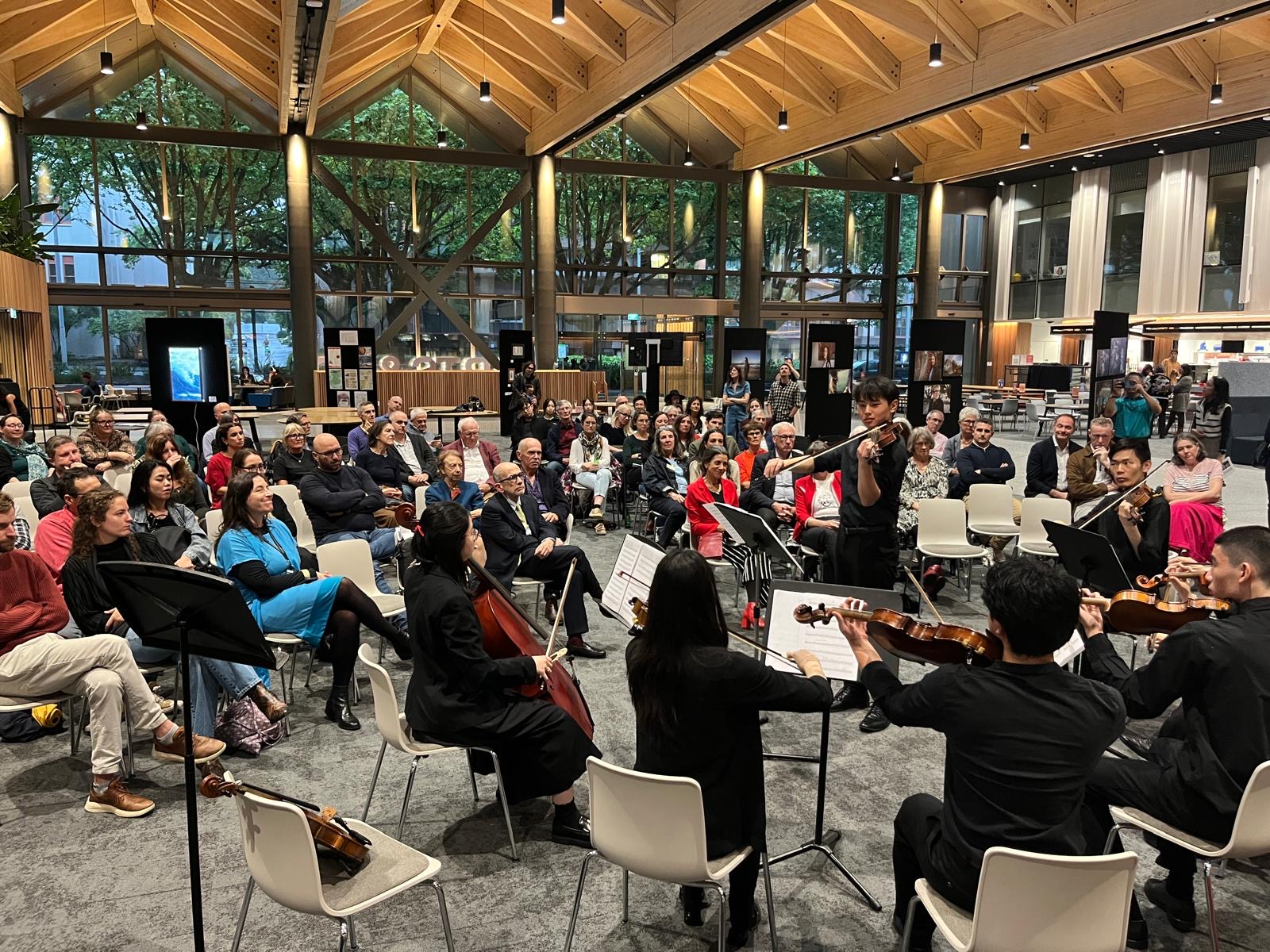 Dopo l’intervento dell’ambasciatore d’Italia, Cristiano Maggipinto, che ha sottolineato il profondo valore culturale dell’italofonia nel mondo, un elegante aperitivo italiano — curato da Cosimo Ceccherini — ha dato il via al gran finale della serata: il concerto All Vivaldi dell’AUSCO Orchestra, l’ensemble degli studenti dell’Università di Auckland, che ha incantato oltre cento spettatori fino all’ultima nota.