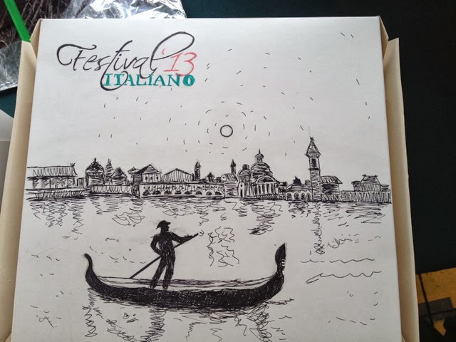 One of the cake boxes, decorated by Hanna (Dante after school programme)