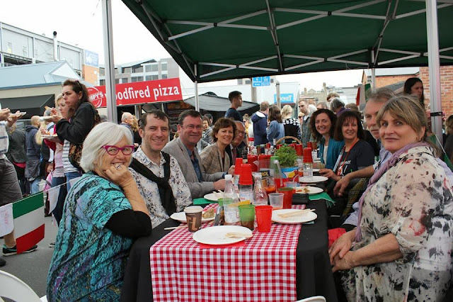 From left: MC Paolo Rotondo, Italian Consular Attaché Daniela Di Napoli, Waitemata Local Board Chair Shale Chambers, Newmarket Experience CEO Ashley Church, Italian Honorary Consul Mario Magaraggia, Dante Alighieri Society Vice-president Bernadette Luciano |