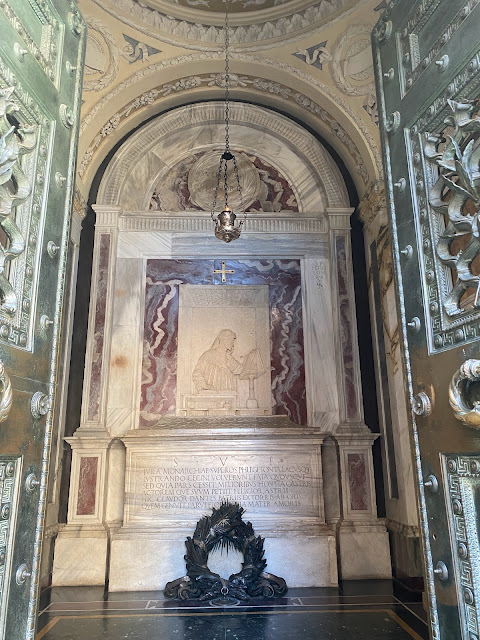 At the centre of the little room, a votive lamp burns with the oil donated by Tuscany. Every year, on the second Sunday of September, the city of Florence sends a delegation and offers the oil to commemorate their most famous citizen, who died in exile.