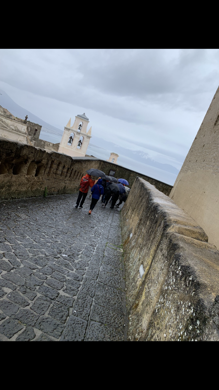 Stranamente, i pericoli più grandi per me, sono arrivati dalle tazzine, dagli ombrelli e dalle porte. Mi sono bruciata le labbra al mio primo caffè napoletano… non era il caffè stesso ma la tazzina ad essere bollente come un vulcano. Il caffè caldo era un fresco sollievo, subito dopo. E poi ho quasi perso un occhio quando è arrivata una spruzzata di pioggia. Gli italiani non sopportano di bagnarsi o di raffreddarsi, quindi al primo segnale di pioggia, tutti gli ombrelli vengono fuori - tuf tuf tuf tuf tuf - di conseguenza, se non sei preparato, puoi vedere un occhio, da tutte le direzioni. E con labbra bruciate e un’occhio sono tornata a casa e mi sono quasi rotta la gamba mentre entravo nel portone del mio condominio. Era una di quelle porte gigantesche che ha una porticina all’interno per entrare. Tuttavia, non ho notato che l’entrata ha un ostacolo (scalino?) per salire e quindi sono caduta in un modo tutto’altro che elegante.