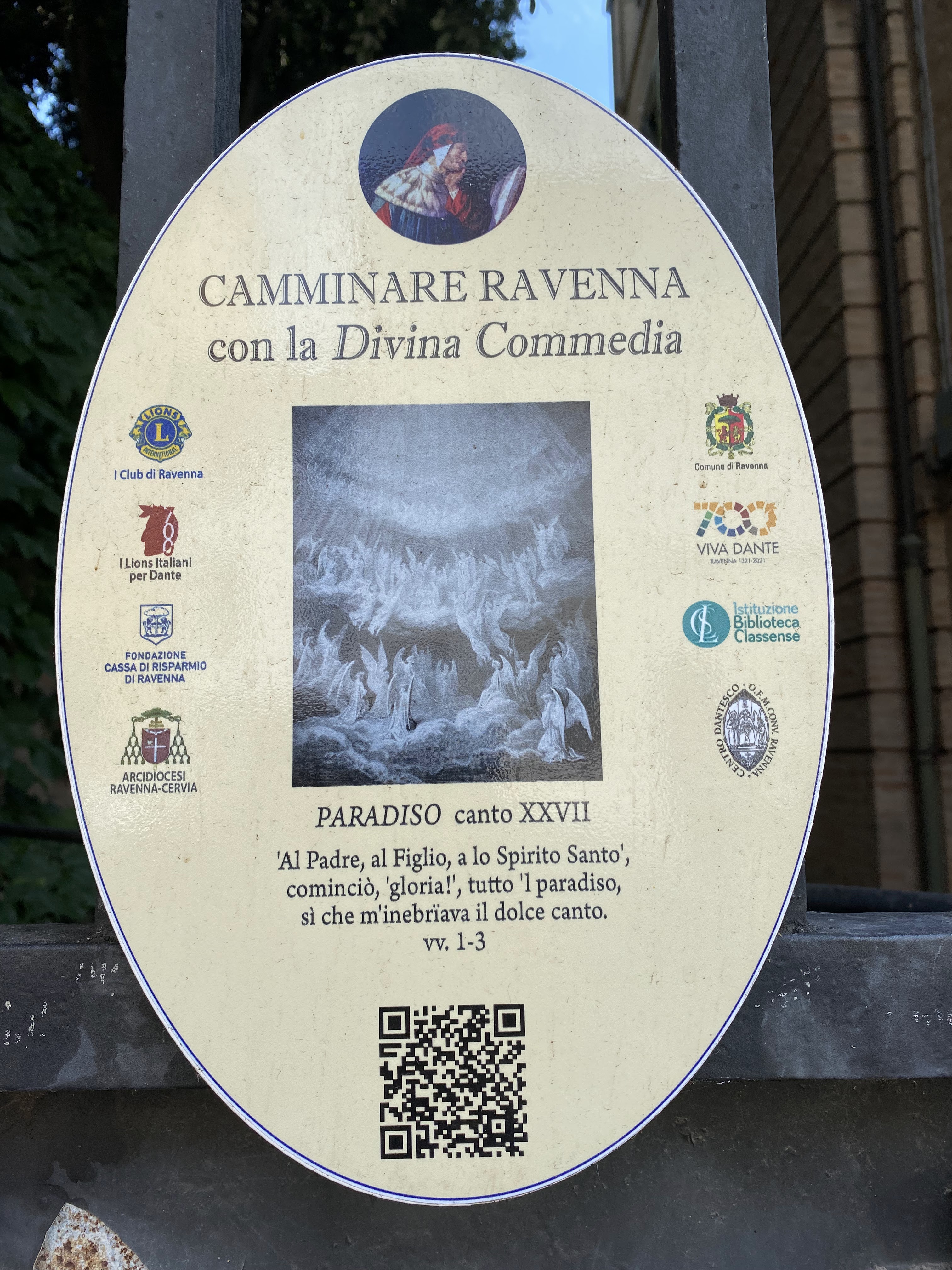 Dante is omnipresent in Ravenna, the city where he lived the last years of his life. in 2021 the city celebrated the 700th anniversary of his death with many artistic and cultural initiatives, which are still active today.  Also, along the city streets, there are several interactive tags with verses from the Divine Comedy.