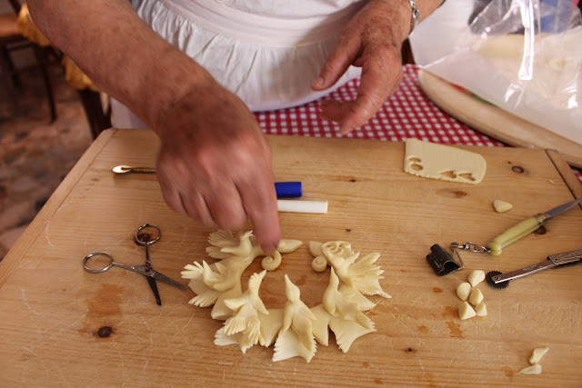 In Sardinia, ritual, ceremonial and votive breads are made in the shape of crowns, baskets, flowers, leaves, and birds for special occasions such as weddings, religious celebrations and other exceptional events. They are symbols of an ancient and new religiosity, inherited from the past through oral tradition and gestures.