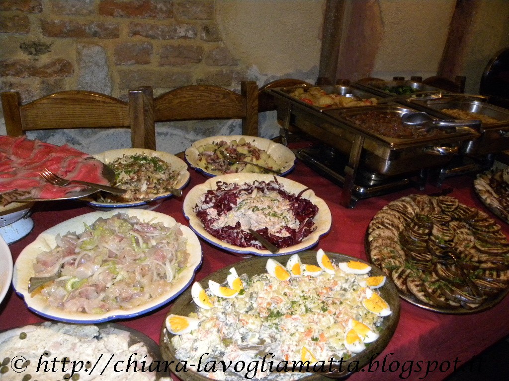 All'ora di pranzo è allestito un banco del buffet,c'è il servizio al tavolo per i primi e poi ci si può sbizzarrire come si vuole...