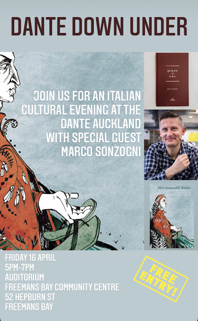 Join us for an Italian cultural evening at the Dante Auckland! Our special guest, Victoria University’s Reader Marco Sonzogni, will present two new books Quantum of Dante and More favourable Waters, and prizes for the Dante Poetry Competition will be awarded. A few books will be available for purchase on the evening.
