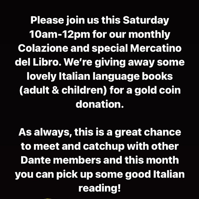 Save the date for the next Colazione and Scambiamoceli (Italian book exchange). Come along with a book or more, or just pop by to browse and meet new people. All welcome!