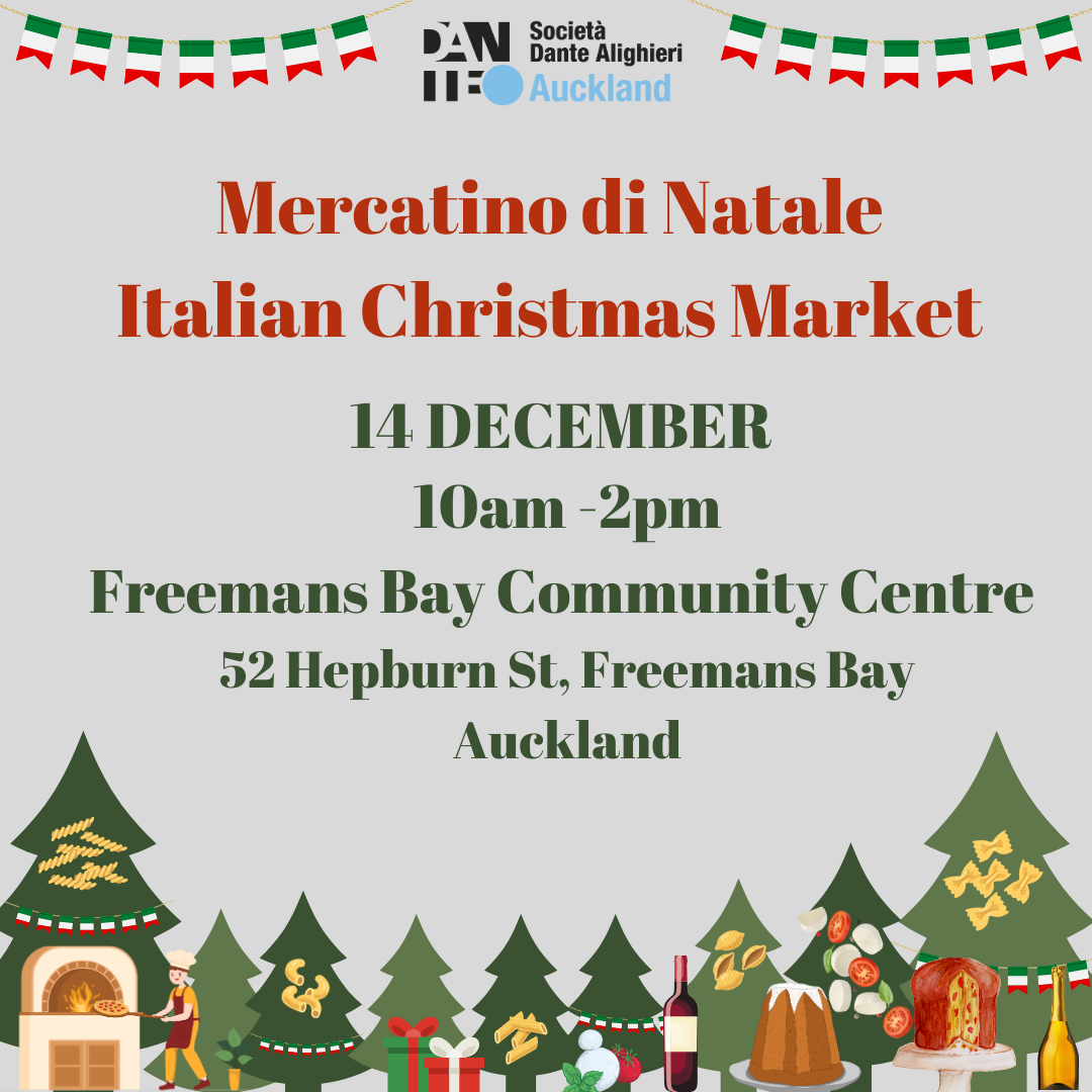 If you sell Italian goods (coffee, Italian food/Italian goods) and would like to have a stall please send an email to info@dante.org.nz with subject line: Italian Xmas Market.