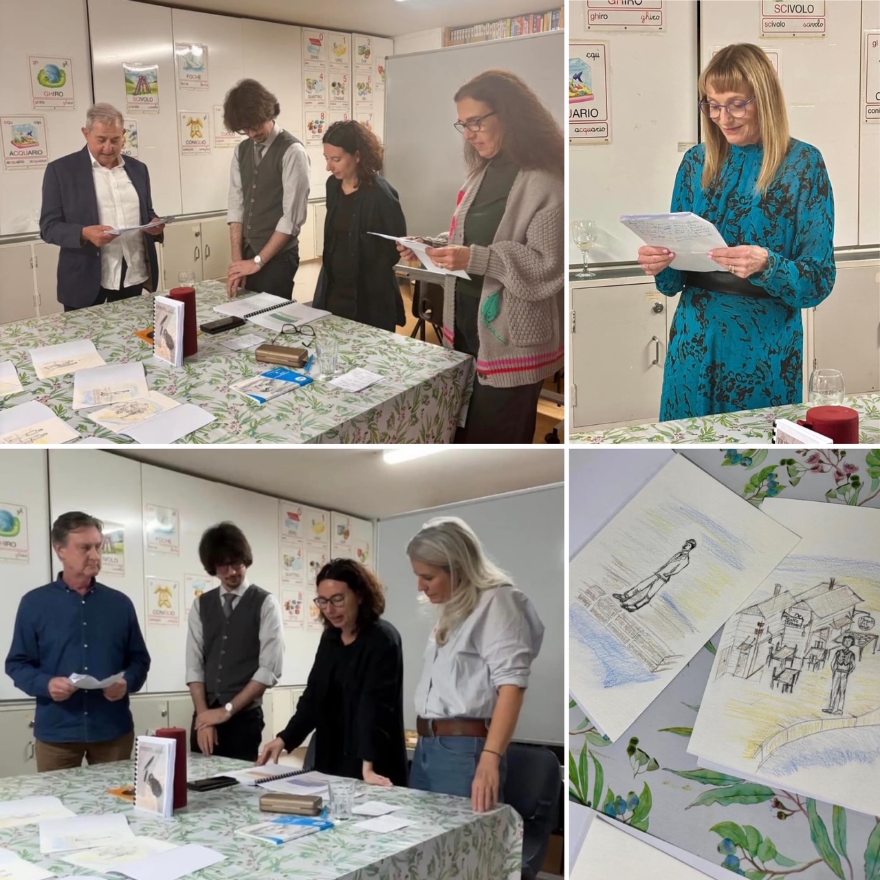 Top left: Marco Sonzogni with the first prize winner of the Italian poetry competition Jean Annan