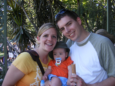 My parents brought their own car and let the rest of us Mandy, Jason, Abbey, David, Me & the two babies (Ashton & Kimball) use my mom's car from Vegas to Anaheim. It was quite the road trip. On the way down David was saying he was a "Disney Virgin" because he hasn't been since he could really remember. And then Mandy responded that if David is a Disney Virgin her daughter Kimball (who is just 9 months old) must be a Disney Slut because she's already been 7 times.