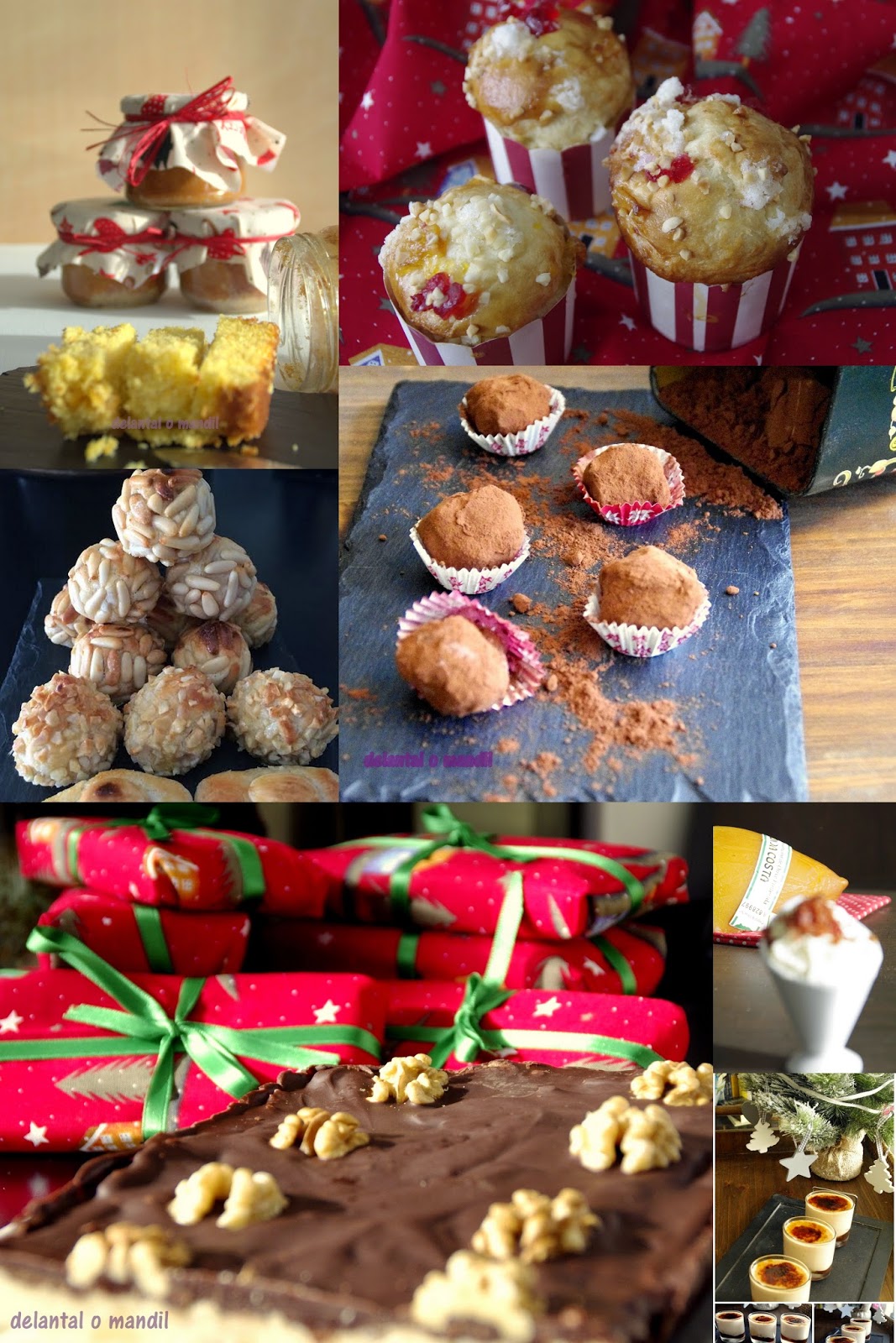 No pueden faltar los turrones: el Turron de nata nuez preparado en casa, supera con creces al comprado. Os doy también una idea para hacer algún detallito o regalo navideño. Compra una tela con arbolitos de navidad, y envuelve porciones y es un regalo perfecto. En relación con pequeños detalles gastronómicos no os olvidéis del Bizcocho en tarro.