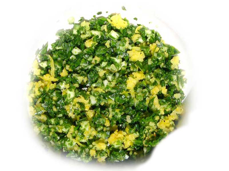 via | emLa gremolada (dal milanese gremolà, ridotto in grani), è un condimento composto da un trito di prezzemolo e aglio, con l'aggiunta di scorza di limone grattugiata, usato a crudo a fine cottura principalmente per insaporire l'osso buco alla milanese, ma anche per scaloppine o coniglio.