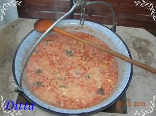 Nálunk már hagyománnyá vált,hogy karácsony előtt,1-2 nappal a barátainkkal főzzük meg bográcsban (22 literes) kint a szabadban a halászlevet,olyan forralt boros-pálinkás bográcsolás :-)Habár mindig a fiúk szokták főzni,de megkért a a férjem,hogy tegyük fel a blogunkra,így karácsony előtt hátha valakinek segítséget nyújt az elkészítésében.